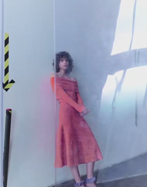LoungeEdit. Light velvet effect longuette dress. Long sleeve. Boat neckline. Slightly flared skirt. The dress is 120cm long